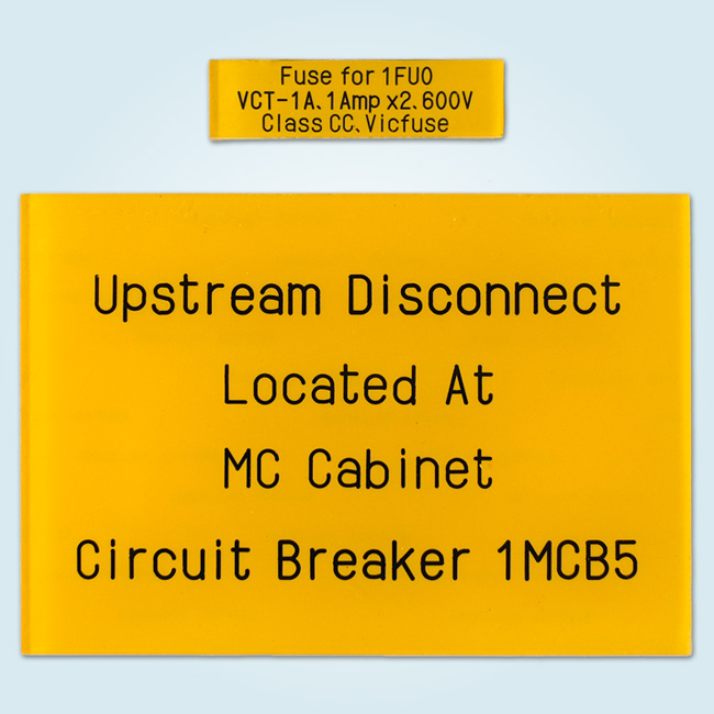 透明のアクリルを外形カットし、機械彫刻で裏彫りし、掘った文字部分に黒色インクを充填し、裏から黄色のインクで塗装しました。