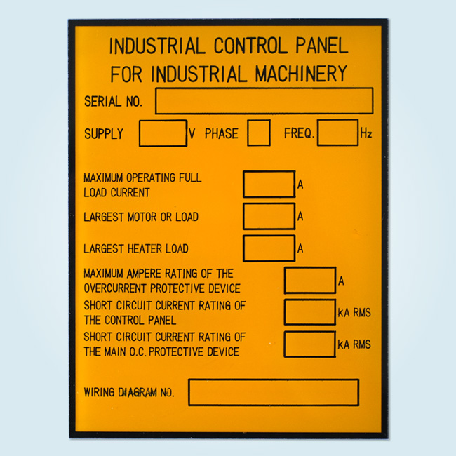 大きなアクリルの状態で黄色く塗装し、その後、アクリルを四角にカットし、角のアールは機械彫刻で形を作り、更に、機械彫刻で文字や線を掘っていきます。彫ったところに黒のインクを充填します。