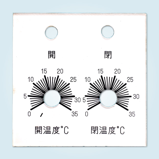 表から文字や図名を印刷し、裏面からは、調整値が表示される部分のみ裏が透けるように残し、それ以外をベタでシルク印刷をしました。