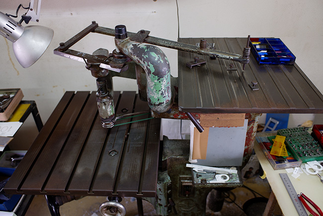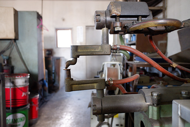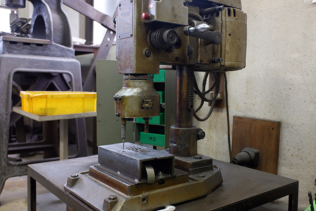 メスネジのネジ山を切る(ネジ山を作ることを「ネジ山を切る」といいます。)する機械です。 ネジ穴のサイズは0.1mmサイズでの調整が可能で、2mm位の大きさからネジ穴を切ることができます。