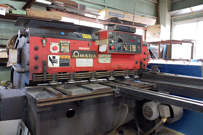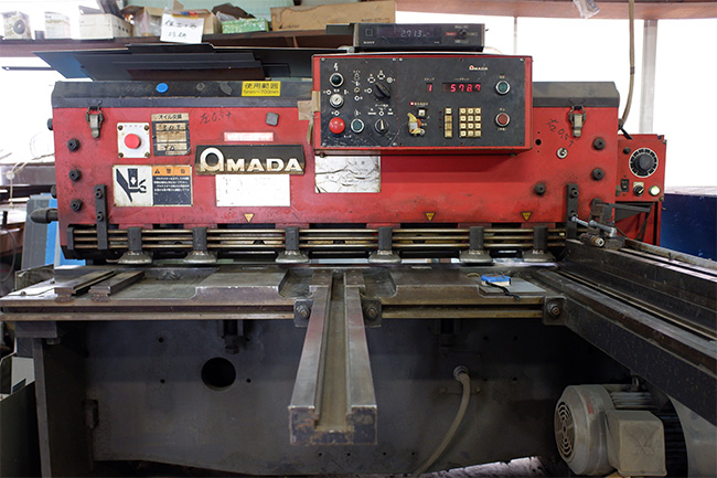 アルミや鉄、ステンレスの大きな板を正確にしての寸法にカットする機械がシャーリングマシンです。タレットパンチプレスで複雑な形にカットする前に大まかに大きな板をカットしたい場合の他、シャーシなどの外形を正確な大きさにカットする事も可能です。