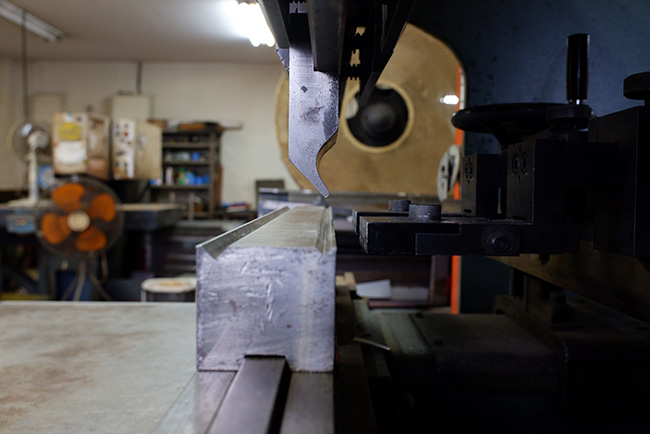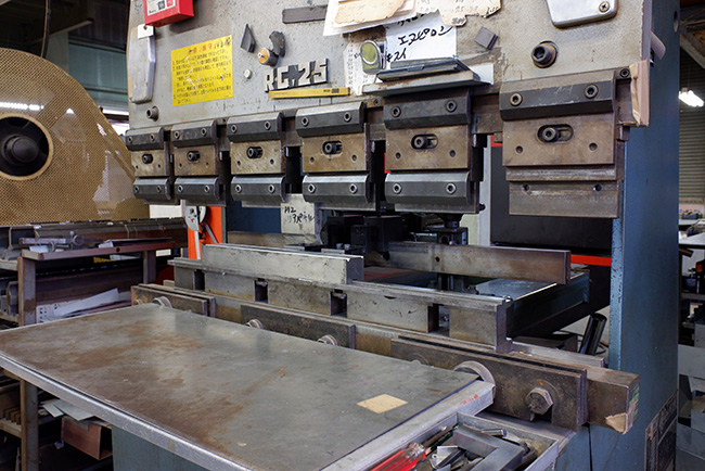 ベンダー加工機を使い、アルミや鉄、ステンレスの曲げ加工を行います。曲げる角度を設定したり、アールのついた曲げ加工なども可能です。