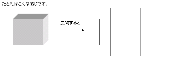 これはよく小学校の算数などでやった展開図を思い出していただくとイメージしやすいかと思います。
